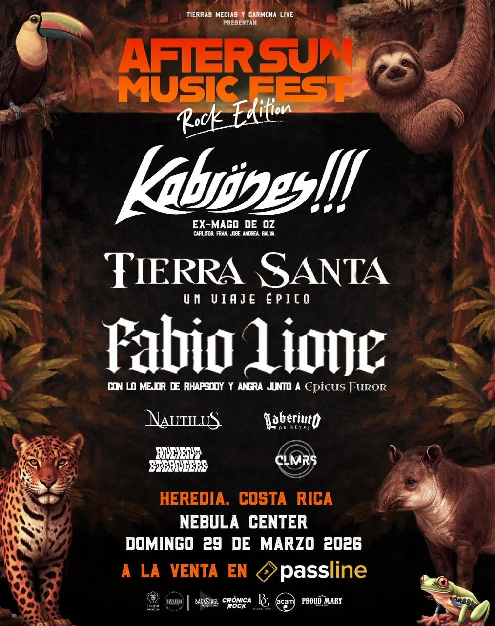 AfterSun Music Fest 2026 confirma a Kabrones, Tierra Santa, Fabio Leoni y Symphony X en Heredia