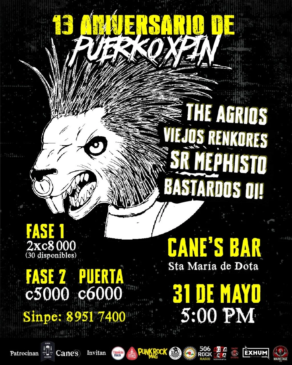 En este 2025, la banda celebra su 13 aniversario con un concierto especial en el corazón de Los Santos. El evento se realizará el sábado en Canes Bar, Santa María de Dota, a partir de las 5 p.m., y contará con la participación de bandas hermanas como The Agrios, Viejos Renköres, Señor Mephisto y Bastardos Oi!