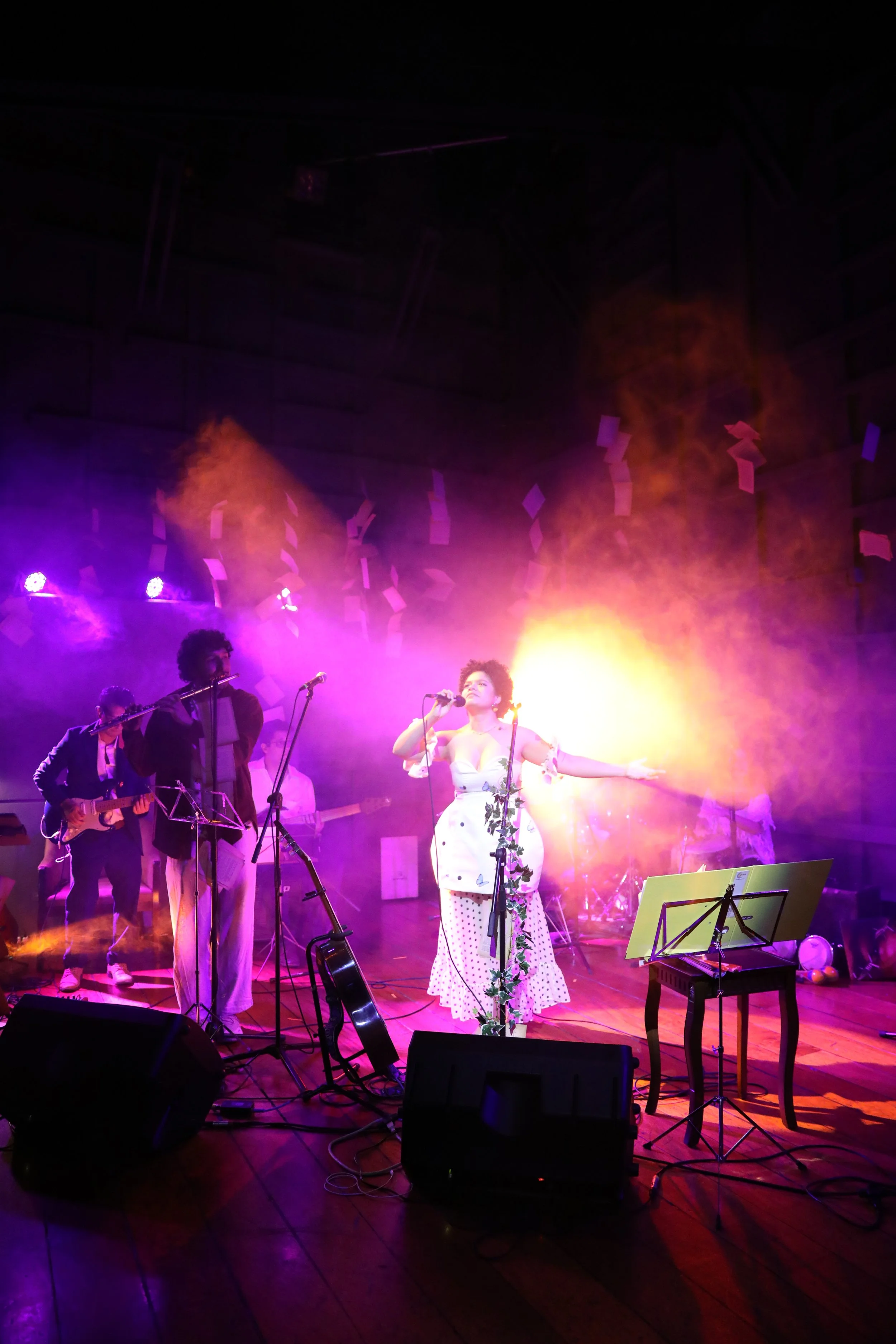 Con una banda integrada por Daniel Rojas (guitarra), Max Esquivel (bajo eléctrico), Fiorella Hidalgo (batería) y bajo la dirección musical de Edgar Brenes Soto, la artista repasó gran parte de su repertorio original, abriendo con “Mujer Salvaje”, tema que marcó su proyección internacional y la consolidó como una voz referente en la música centroamericana.