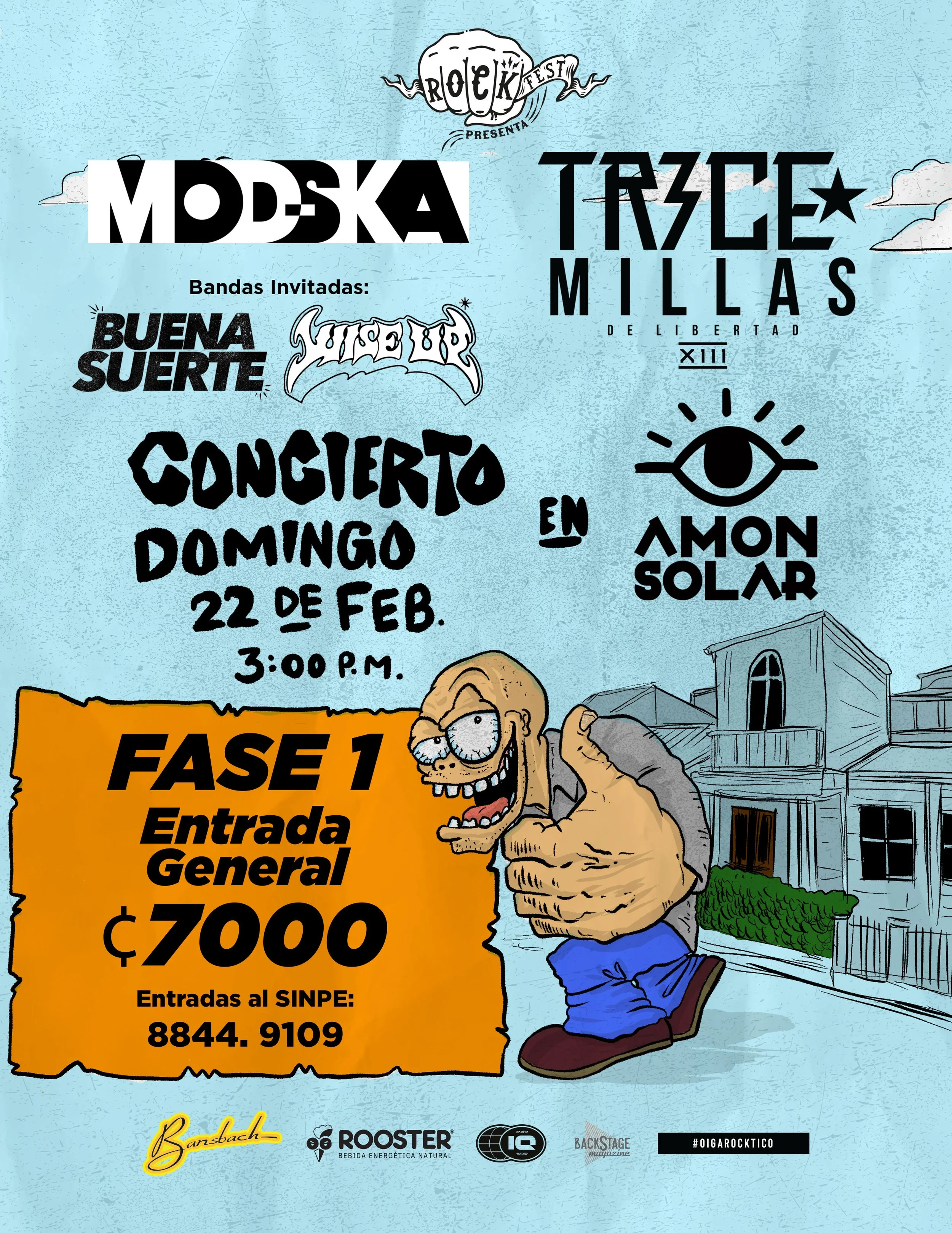 La jornada contará además con la participación de Buena Suerte y Wise Up, dos bandas con mucho que mostrar. El show se realizará el domingo 22 de febrero en Amón Solar, a partir de las 3:00 p. m. Las entradas en fase 2 tienen un costo de ₡9.000 o dos por ₡15.000 y están disponibles vía SINPE al número 8844-9109.